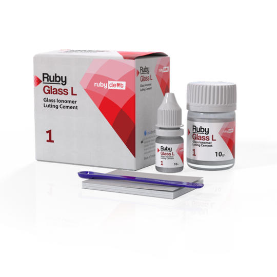 RubyGlass F is a cost-effective powder and liquid glass ionomer restorative cement. It can be used as a base or liner material under restorations, providing excellent support and durability for dental procedures Properties Great Aesthetics: Offers...Regular price د.إ.50.00 -