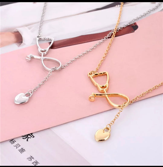 Stethoscope shaped heart pendant necklace